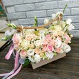 Альстромерии и розы в ящичке