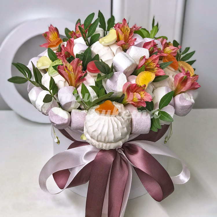 Альстромерии и зефир в коробочке