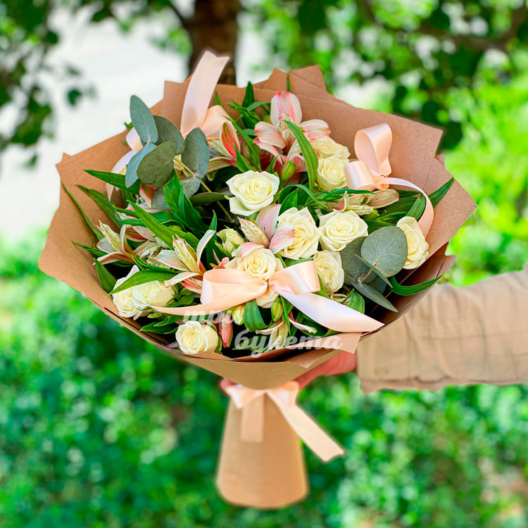 Букет белых альстромерий с куст. розами