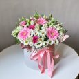 Букет белых гвоздик и красных гербер