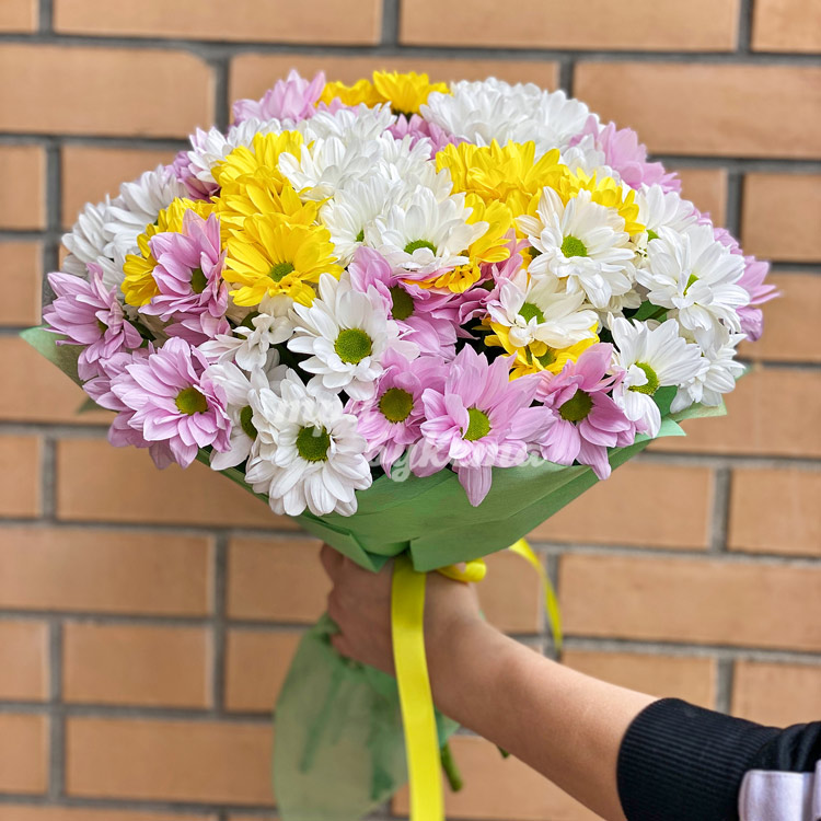 Букет из 18 разноцветных куст. хризантем