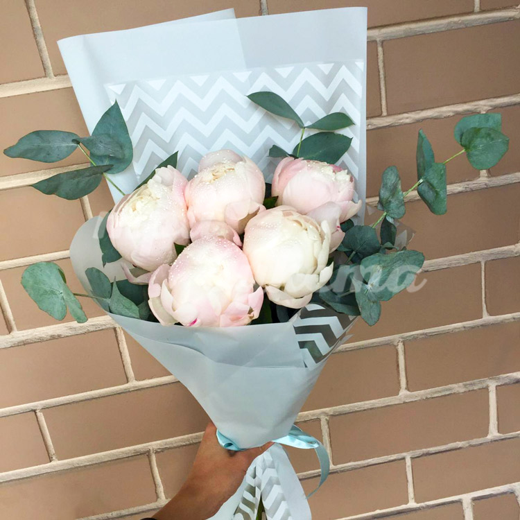 Букет из 5 белых пионов