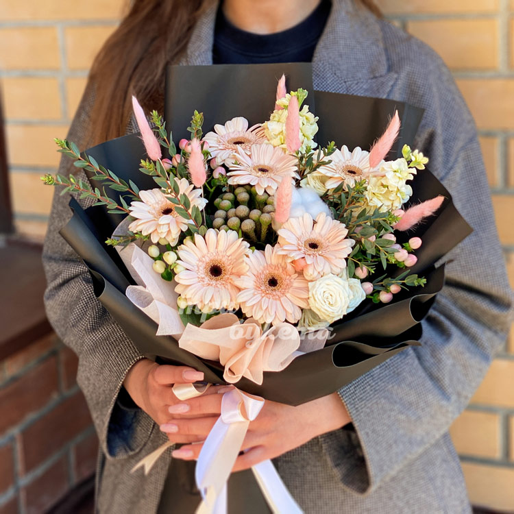 - Персиковые герберы, 7 шт.