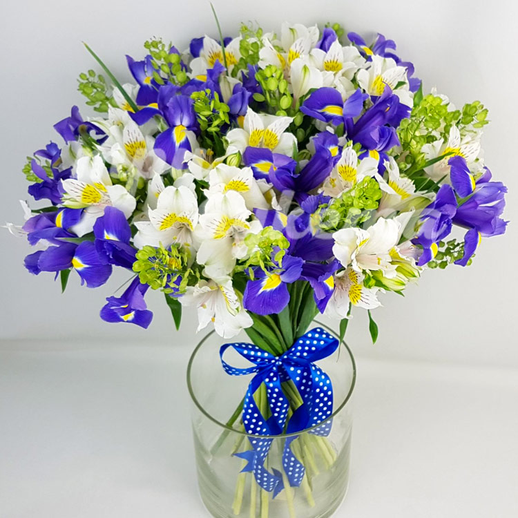 Букет из ирисов и альстромерий