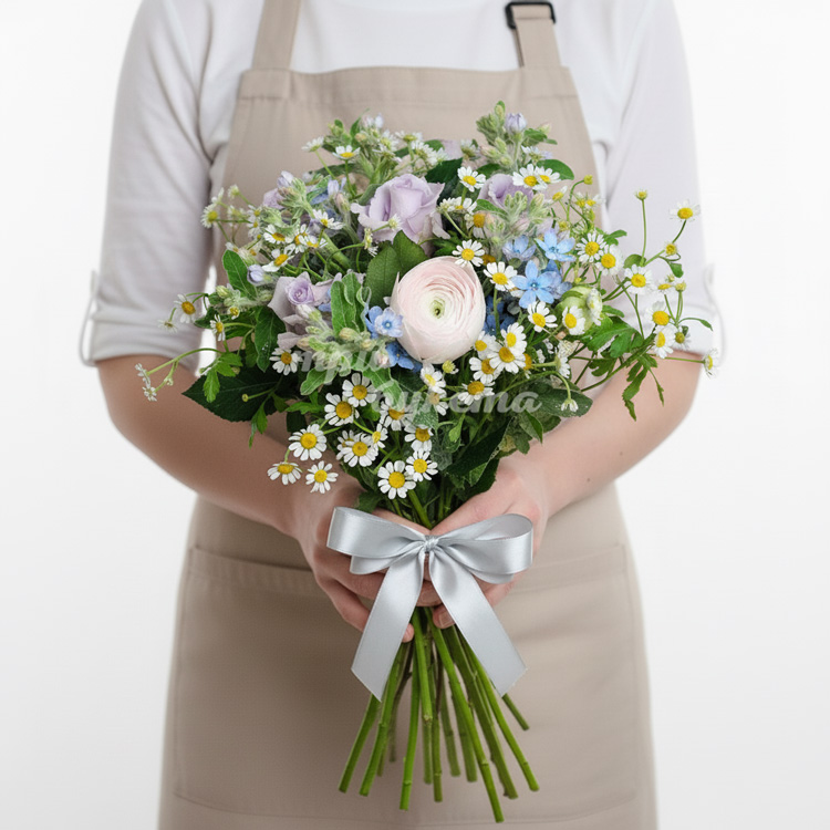 Букет из ромашек и ранункулюса