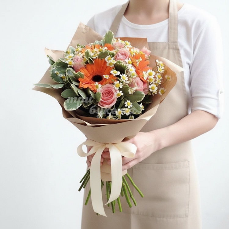 Букет из ромашек и розовых роз