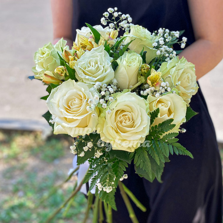 Букет из роз с гипсофилой