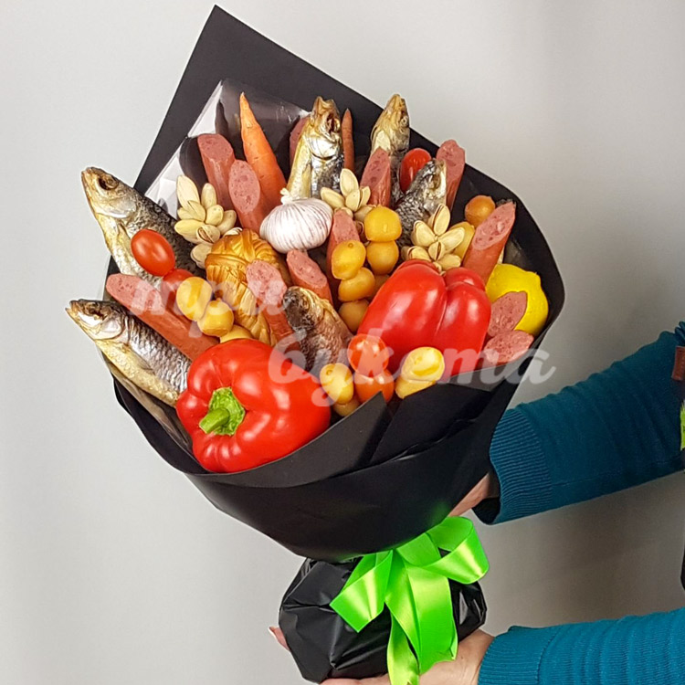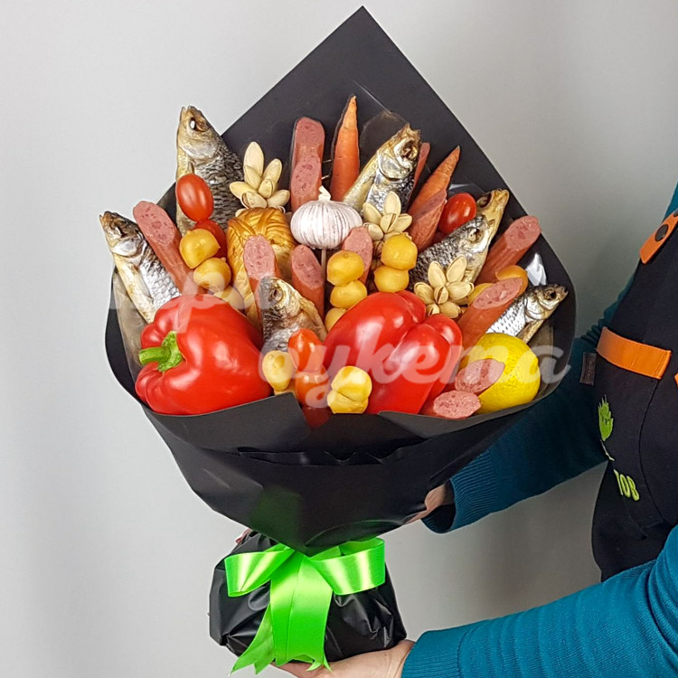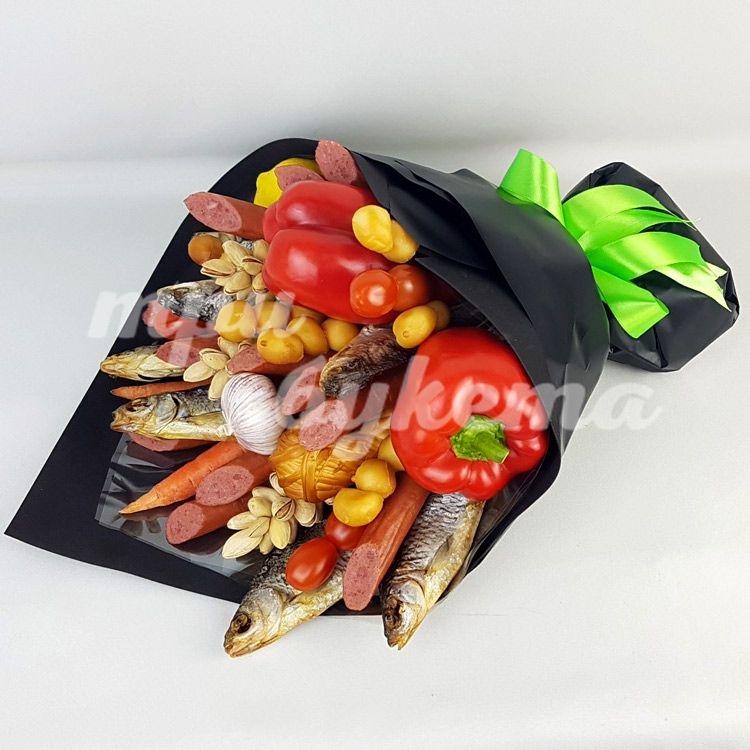 Букет из вяленой рыбы и колбасы