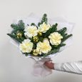 Букет розовых и белых роз с зеленью