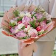 Букет розовых пионов и персиковых роз