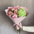 Цветы гортензий, роз и пионов