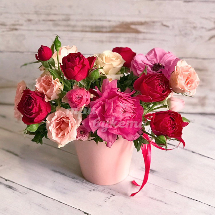 Композиция роз в картонном кашпо
