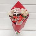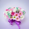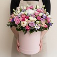 Коробка красных гербер, роз и фрезий
