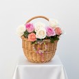 Корзина гортензий и розовых роз