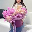 Корзина розовых куст. роз с гипсофилой