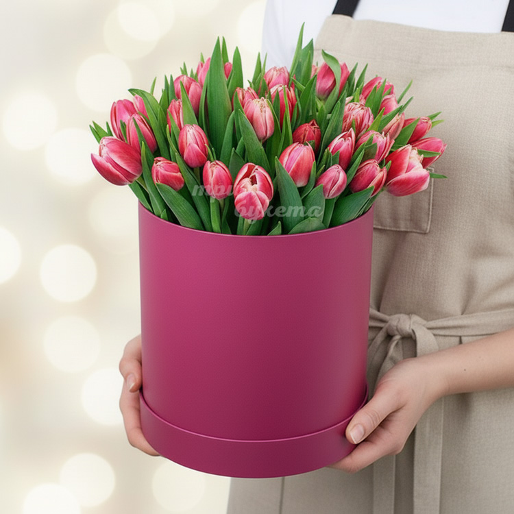 Красные тюльпаны в коробке