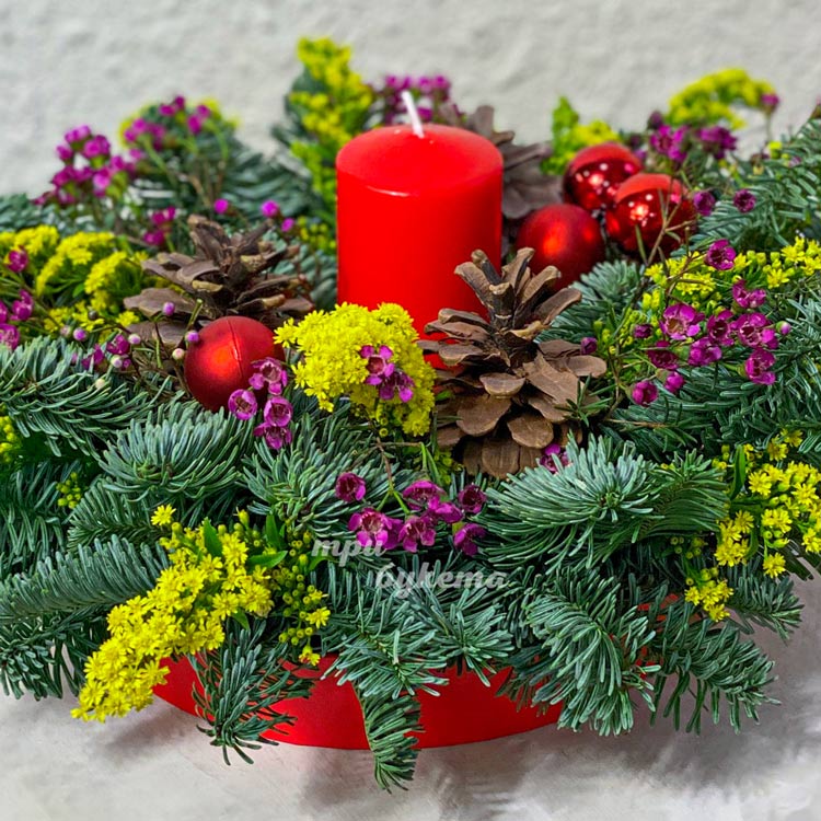 Настольная новогодняя композиция со свечой