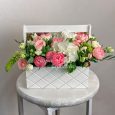 Пионы и розы с макарунами в коробке