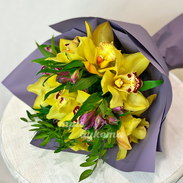 Желтые орхидеи с альстромериями
