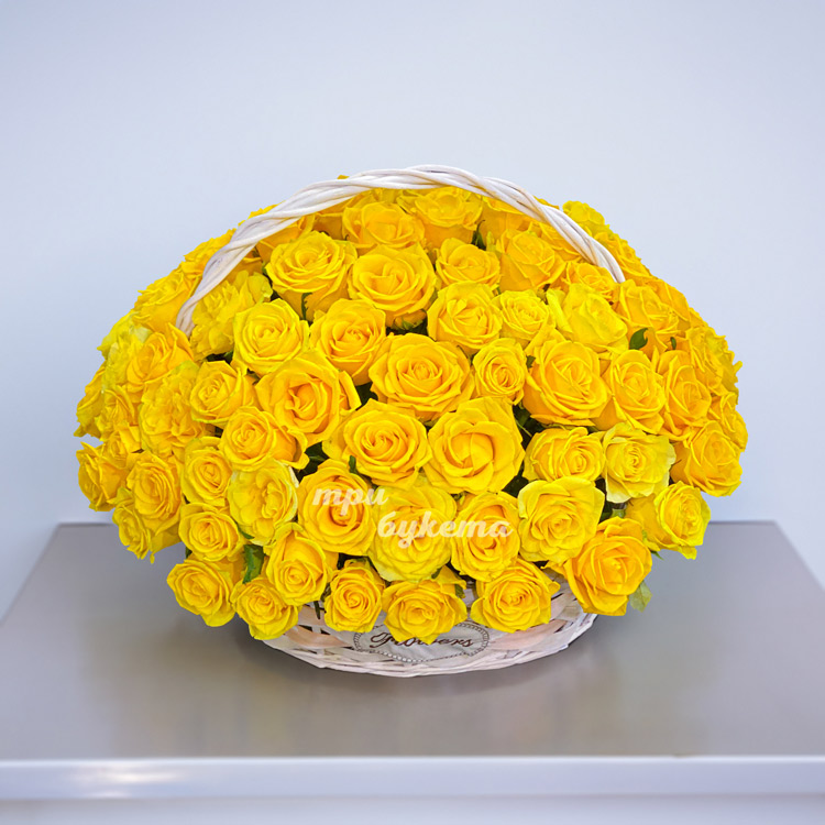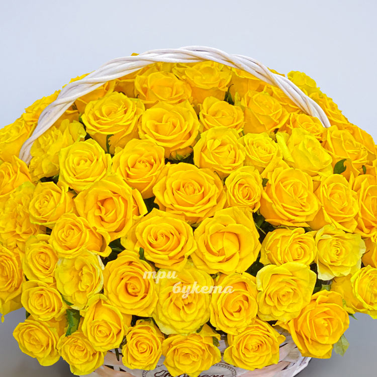 Желтые розы в плетеной корзине